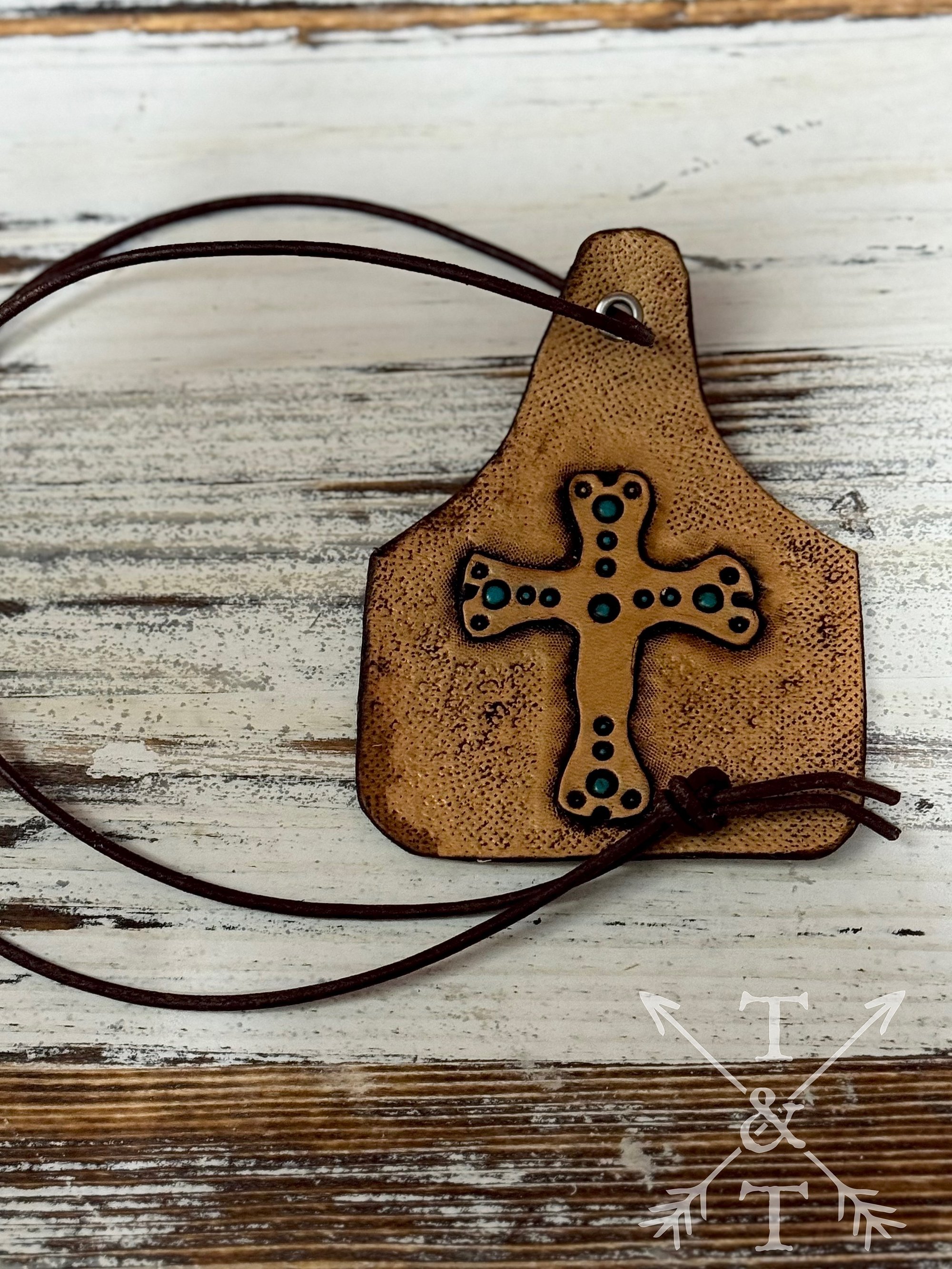 Hand-tooled from genuine leather, this rustic cross car freshener brings a touch of western faith to your ride — complete with turquoise-style accents and long-lasting scent. Perfect for those who like their dashboards blessed and their air freshener bold.