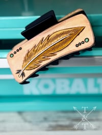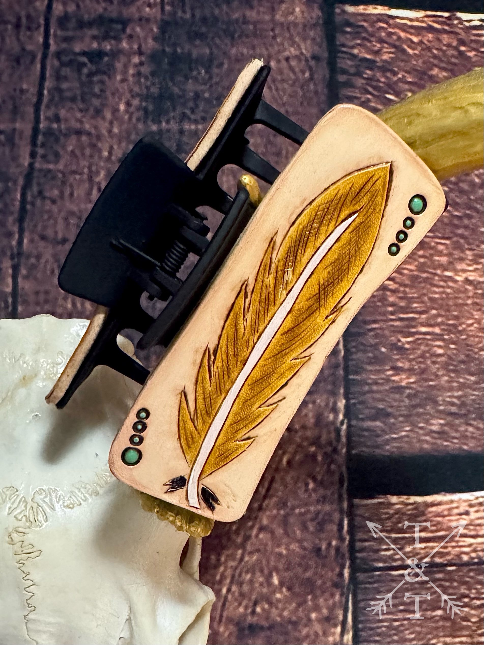 Who said you can’t be wild and put-together? These hand-tooled leather hair clips feature a bold golden feather and just the right pop of turquoise — giving “don’t mess with me” energy while still keeping it cute. Built to hold strong through wind, work, or a whiskey night out, these clips don’t just accessorize… they attitude-ize. So go ahead, wrangle your hair like the hot mess handler you are. Yeehaw, but make it fashion. Tame that mane!🪶